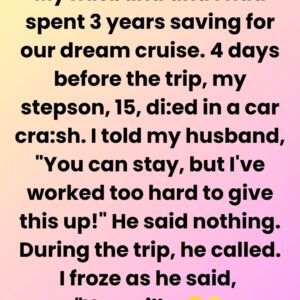 My husband and I had spent 3 years saving for our dream cruise. Four days before the trip, my stepson, 15, died in a car crash. I…