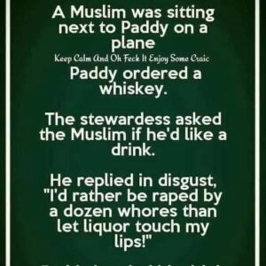 A Muslim was sitting next to Paddy on a plane. Keep Calm And Oh Feck It Enjoy Some Craic Paddy ordered a whiskey. The stewardes s asked…