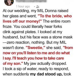 I thought my wedding day was perfect — until my mother-in-law stood to toast. With a smile, she raised her glass and said, “To the bride, who…