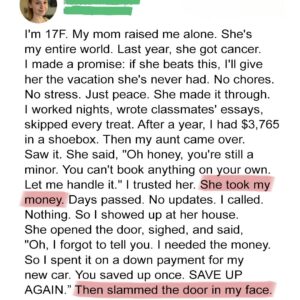 I’m Vera, 17. After my mom survived cancer, I promised myself I’d give her something she’d always dreamed of: a week at the ocean. So I worked…