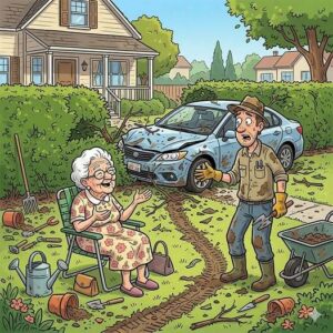 My neighbor was working in his yard when he was startled by a late model car that came crashing through his hedge and ended up in his…