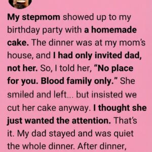 My stepmom showed up to my birthday party with a homemade cake. The dinner was at my mom’s house, and I had only invited my dad, not…