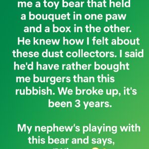 My ex-boyfriend gave me a toy bear that held a bouquet in one paw and a box in the other. He knew how I felt about these…
