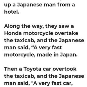 An Indian taxi driver picked up a Japanese man from a hotel. Along the way, they saw a Honda motorcycle overtake the taxicab, and the Japanese man…