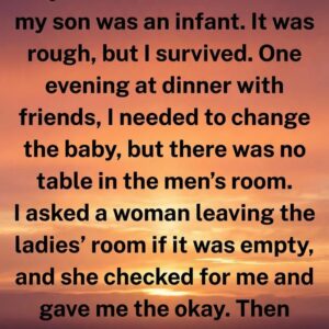 My first wife left us when my son was an infant. It was rough, but I survived. One evening at dinner with friends, I needed to change…