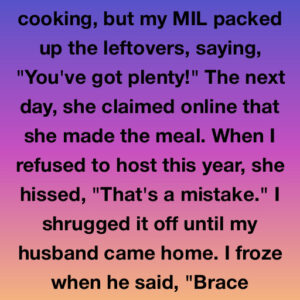 Last Christmas, I spent days cooking, but my MIL packed up the leftovers, saying, “You’ve got plenty!” The next day, she claimed online that she made the…