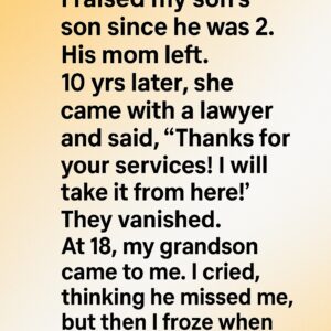 I raised my son’s son since he was 2. His mom left. 10 yrs later, she came with a lawyer and said, “Thanks for your services! I…