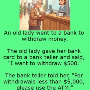 An old lady went to a bank to withdraw money. The old lady gave her bank card to a bank teller and said, “I want to withdraw…