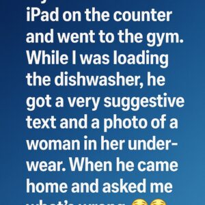 “My husband left his iPad on the counter and went to the gym. While I was loading the dishwasher, he got a very suggestive text and a…