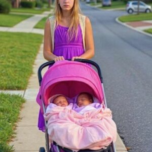 I was still in my scrubs, keys in one hand and a grocery bag in the other, when my fourteen-year-old daughter pushed a stroller onto our porch….