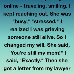 No calls. I saw my daughter online – traveling, smiling. I kept reaching out. She was ‘busy,’ ‘stressed.’ I realized I was grieving someone still alive. So…