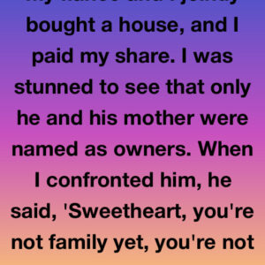 My fiancé and I jointly bought a house, and I paid my share. I was stunned to see that only he and his mother were named as…