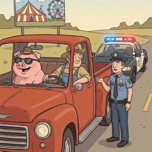 A farmer and his pig were driving down the road when a cop pulled him over. The cop asked the farmer, “Didn’t you know it is against…