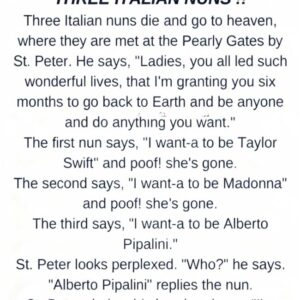 JOKE :When Three Italian Nuns Were Given a Second Chance or Fun