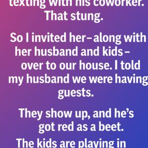 I caught my husband texting with his coworker. That stung. So I invited her—along with her husband and kids—over to our house. I told my husband we…