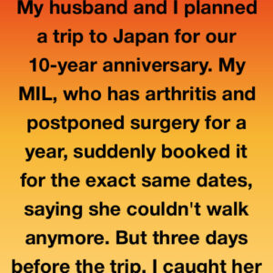 My husband and I planned a trip to Japan for our 10-year anniversary. My MIL, who has arthritis and postponed surgery for a year, suddenly booked it…