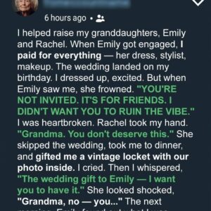 When my granddaughter Emily told me I wasn’t invited to her wedding because it was “for her friends,” my heart cracked. I had helped raise her, held…