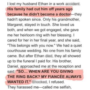 My Husband’s Family Demanded I Return My Engagement Ring at His Funeral — They Didn’t Expect What Came Next