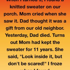 When I turned 9, I found a knitted sweater on our porch. Mom cried when she saw it. Dad thought it was a gift from our old…