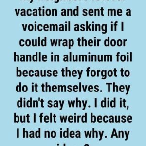 When my neighbors went on vacation, they left me a voicemail asking if I could cover their door handle with aluminum foil. They didn’t explain why, and…