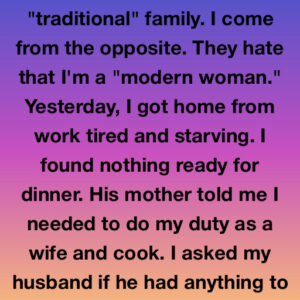 My husband comes from a “traditional” family. I come from the opposite. They hate that I’m a “modern woman.” Yesterday, I got home from work tired and…