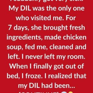 I suddenly got very sick. My DIL was the only one who visited me. For 7 days, she brought fresh ingredients, made chicken soup, fed me, cleaned…