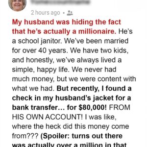 After forty-three years of marriage, I thought I knew everything about my husband, Tom. We built a simple life together — he worked as a school janitor,…