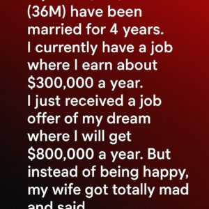 My wife (33F) and I (36M) have been married for 4 years. I currently have a job where I earn about $300,000 a year. I just received…