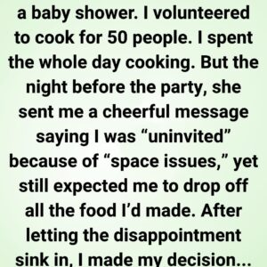 Two weeks ago, I got invited to a baby shower. I volunteered to cook for 50 people. I spent the whole day cooking. But the night before…