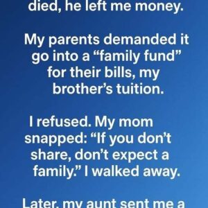 When my grandfather passed away, I thought grief would be the hardest part. But the true challenge began when the will was read. I had been left a modest inheritance — nothing extravagant, but enough to make my parents take notice.